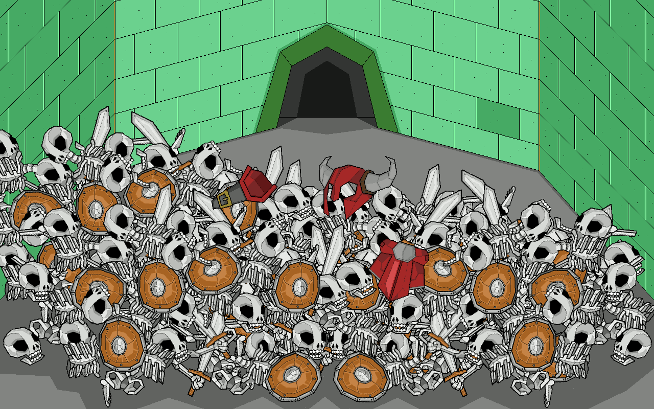 Ormai hai capito l'antifona. Nelle cripte di Golden Axe i morti non hanno mai pace e attendono solo il malcapitato di turno per risvegliarsi e questa stanza dalle pareti verdi non sembra fare eccezione: tuttavia, nella pila di ossa di questa stanza capisci istintivamente che c'è qualcosa di diverso rispetto alle altre.