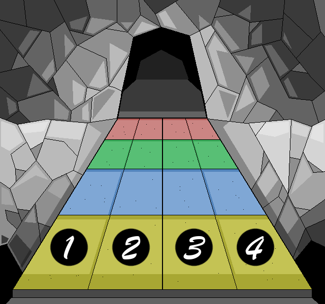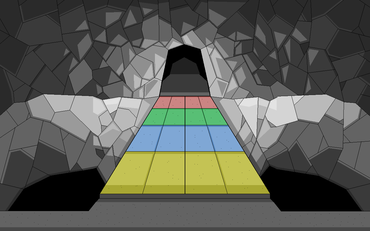Un ponte largo quanto la strada ti offre un passaggio obbligato sei vuoi proseguire. Il ponte è apparentemente solido e in buono stato, ma sotto di esso un abisso senza fondo ti fa capire che non si scherza. Fatto particolare, il ponte è diviso per colori —giallo, blu, verde e rosso— ed è largo quattro caselle, ognuna abbastanza grande da permettere all'intero party di starci sopra.