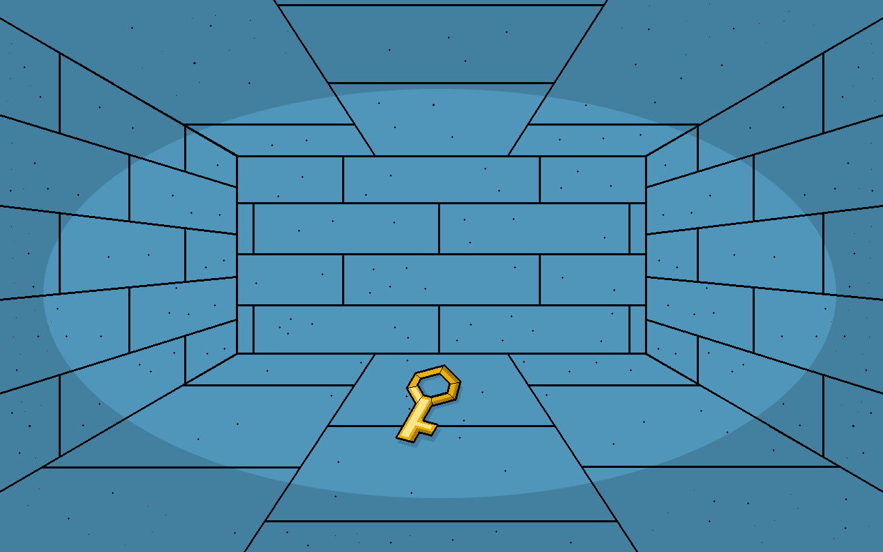 Ti trovi di fronte un muro, non sembra vi siano altre strade percorribili. Qualcosa però luccica sul pavimento.
