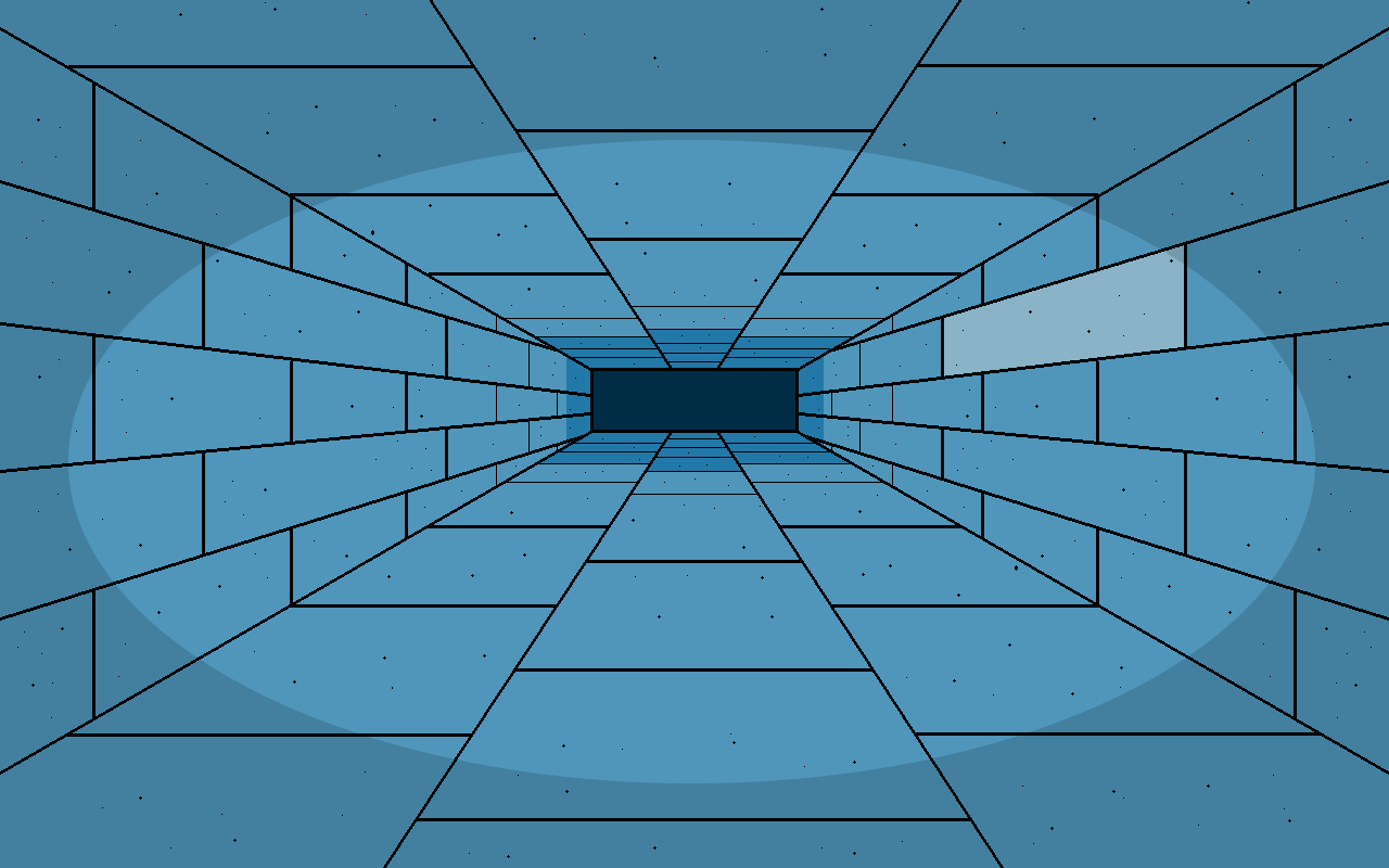 Un lungo corridoio. Puoi solo proseguire dritto.
