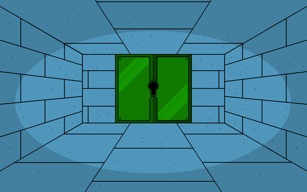 Di fronte a te una robusta porta verde. Per proseguire avrai bisogno della chiave dello stesso colore.